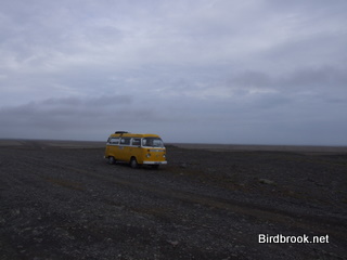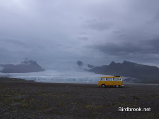 | Active volcano, Iceland. Our van is one of the dots at the edge of the crater in the right hand corner. | Glacier, Iceland |