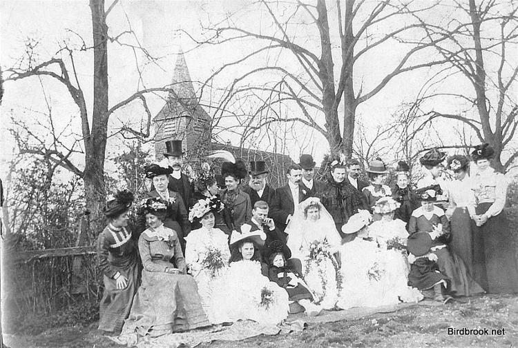 Guests and well wishers waiting for the new Mr & Mrs Albert Pamplin to step out of the Church.