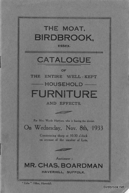 The following sale catalogue for the entire contents of The Moat in 1933 makes fascinating reading, when they say 'entire' they certainly meant it. Where did Mrs. Wade Harrison go? She certainly was travelling light!