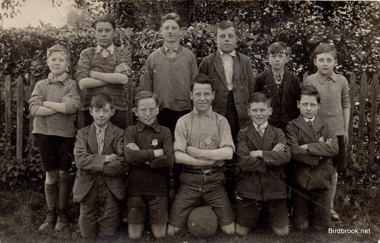 Above Birdbrook School Football Team 1920/30ish, again thanks to Mary Sare's efforts we can now name all but three. Back row: Unkown, John Ford, Bert Travis, Eric Kendall, Unknown, Toby Hunt. Front row: Victor Manning, Victor Hinton, Albert Hinton, Bill Jay, Unknown. Picture from The Kendall