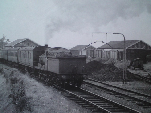J15 leaving Birdbrook, August 15th 1957 photo B.P Pask. Note the p-way trolly to the right infront of the vanfit waggons. Picture sent to us by Paul from Haverhill