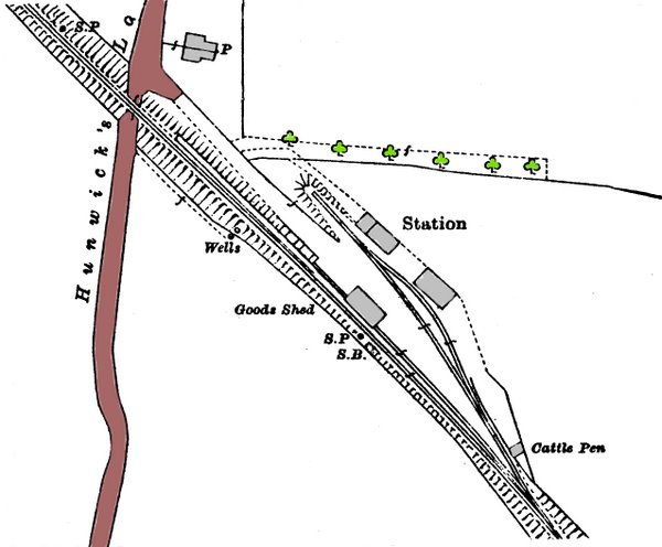 The above map shows the lay out of the station, three goods sheds remain today. Hunwick's Lane in now known as Station Road.