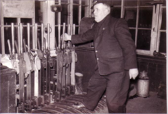 Signalman Mr. Charlie Chase in his box on the last day 31,12.1961.