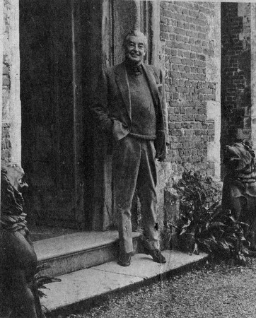Go into almost any village in Essex and the chances are you will find a gallant band of voluntary workers trying every method, new or old, to raise money. And nearly always the money is for one of two causes, the parish church or the village hall. As they rush from one fund-raising event to another these good citizens must sometimes wonder what life would be like if there were no medieval church or Victorian school turned village hall endlessly draining away the profits of their labours. One village where the parish church and the community centre are self-supporting and even well-to-do, instead of down at heel and dependant on charity, is Birdbrook. The tiny village of less than 300 people, right on the north-west border of Essex, has a parish church so well off that they give the Sunday collections away, and a community house which is endowed by an Anglo-American foundation with money enough to provide a centre for village activities, a bowling green, and even a mini-bus to bring in those who live in the outlying districts. The community house, a unique concept, is the brain-child of Mr. and Mrs. John Bryce, who live at Moyns Park, an Elizabethan mansion whose surrounding acres occupy a large part of the parish. The wealthy Bryces took over the estate in the middle '50's, and have restored it to its former glory. The house has sentimental family connections for Mr. Bryce. He was born there when it belonged to his grandmother, Mrs. Ives. Her husband, General Ives, brought it from a very distant relative who was descended from the original builder of the house in 1570. Mr. Bryce breeds racehorses at the Moyns Park Stud. His wife races them, and a very successful partnership it has been. | John Bryce, horse-breeder and philanthropist, at the door of his Moyns Park home. |