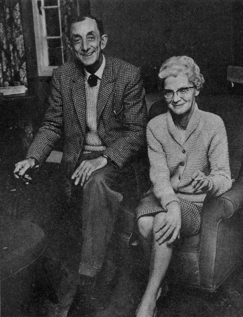 Mr. and Mrs. J. Burgess left a flat in Fulham eight years ago to run the Community House. | From London The community house is looked after by Mr. and Mrs. S.J. Burgess, who live in the flat attached. They came to this remote part of Essex from a flat in Fulham. Mr. Burgess had a job on the "Sunday Times", and got the job at Birdbrook through Ian Fleming, creator of the James Bond, who was working on the paper at the time, and was an old friend of the Bryces. Much of the success of the venture is due to the work of these two cheerful Londoners. Since the house was first opened it has become the centre of village life, with events such as whist drives, rummage sales, WI and Legion meetings all held here. Friday the older people of the parish meet there for a cup of tea, a game of cards or dominoes and a chat. The Bryce Foundation has also provided a mini-bus which Mr. Burgess runs round the village bringing in those who live in the outlying parts of this scattered parish. Funds for Others With nothing to pay, and no bills coming in, the people of Birdbrook still have a few fund-raising events, for their social value, and to raise money either for outside causes, such as the Aberfan Disaster fund, or for such things as the children's Christmas party. An annual flower show is also staged in the house. The Birdbrook experiment was followed by a second community house, at Belchamp St. Paul. Opened about three years ago, the Belchamp house embodies lessons learnt from its predecessor. It is slightly larger, and has a tennis court for the younger generation, instead of the bowling green which at Birdbrook is the home of a flourishing bowls club. Although the Birdbrook house is an undoubted success, Mr. Byrce remarks that social conditions have changed in the last ten years or so since the idea was first considered. He feels there is not such a need now as there was then. |