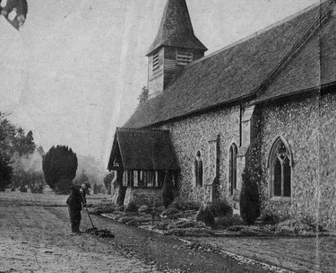 The old schoolroom has been renovated and put into use as a clubroom for the youngsters, and now a new altar is being installed and the sanctuary repannelled. Later the parish hopes to part with its present organ, and install a new Hammond instrument, at the same time clearing the chancel and re-arranging the seating to better advantage. Outside the newly refurbished church is a churchyard kept like a gentleman's garden. It has the attention of a gardener for a day a week to trim the neat lawns and weed the paths. With the burden of church upkeep off their shoulders what do the church-goers of Birdbrook do with their money? "We don't have coffee mornings and bazaars and fetes and sales of work" says the Rector, Rev. Fred Cordingley, "but we are pretty good on special collections, and we give all our Sunday collections away." One Sunday each month the collection goes to the Sue Ryder Homes at Cavendish, just across the Suffolk border. But most of Birdbrook's offerings go further afield, to the Children's Society, and to the CMS and other missionary societies. Relieved of the pressing problems of day-to-day giving, the people of this tiny village are all the more ready to support good causes in the wider world. In the meantime they quietly enjoy their good fortune. | The parish church at Birdbrook is so rich it has a part-time gardener to keep the churchyard neat and tidy. Mr. William Underwood rakes up autumn leaves. |