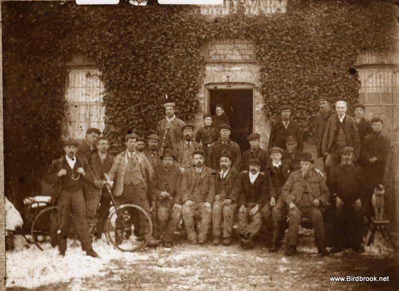 The above picture was sent to us by Pat Steed and shows her Grandfather, Tom Steed, standing on the left with his thumbs in his waistcoat, with possibly Walter French's men at the front of the pub. He was a plumber, (maintaining the wells and pumps), decorator and glazier. Could he have sub-contracted to Walter French's empire? He lived in the cottage next to the railway line from 1904 to at least 1911 so presume the picture is dated between those years. Can anyone put a name to any of the others?